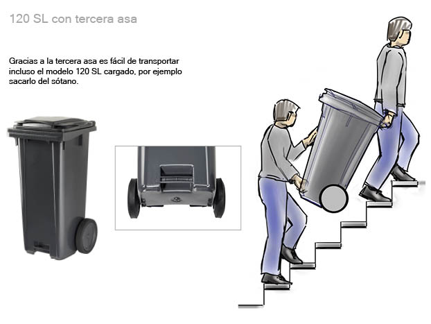 El producto SL está optimizado para la carga lateral. Representa eficiencia y flexibilidad, y es claramente reconocible por la moldura vertical de refuerzo en las caras delantera y trasera. El más reciente diseño y el saber hacer en ergonomía ha sido incorporado a todos nuestros contenedores R3SL. El reposapiés integrado protege la espalda del usuario, mientras que el reductor de ruido en la zona de montaje de las ruedas garantiza una operación silenciosa.
