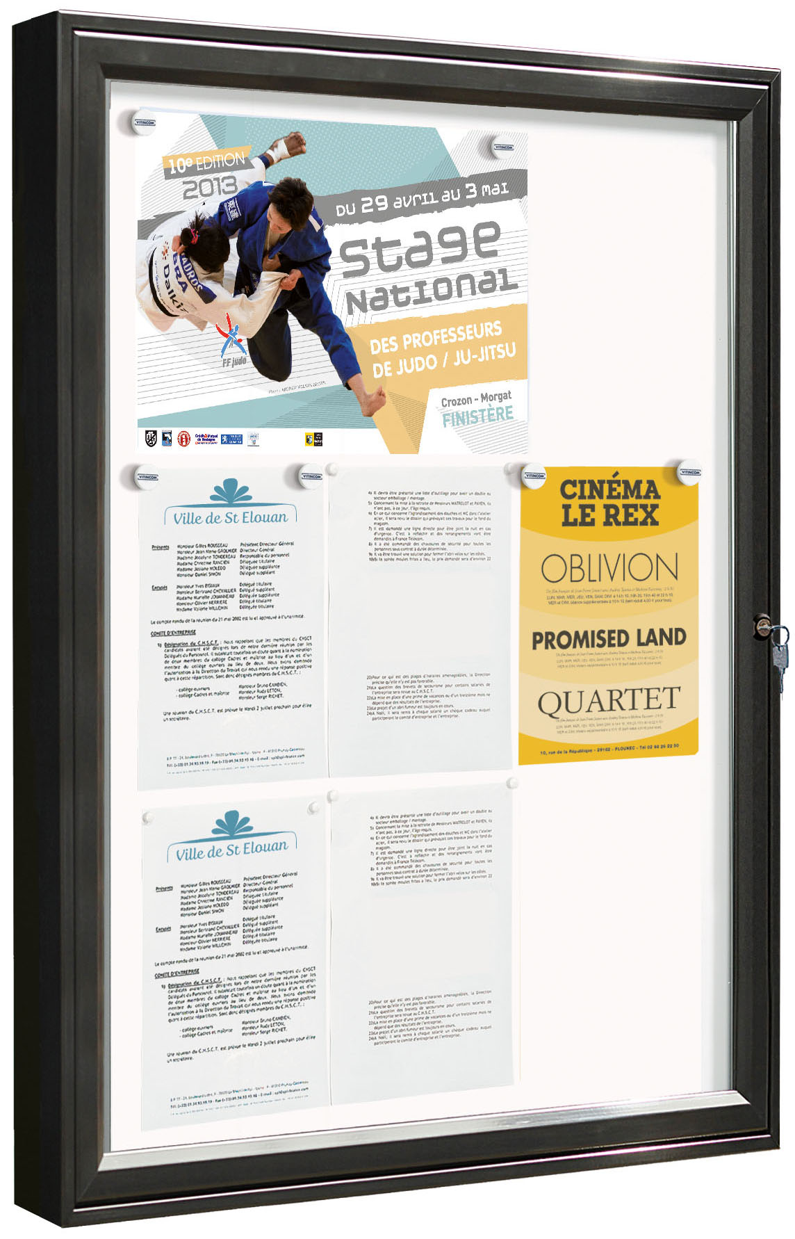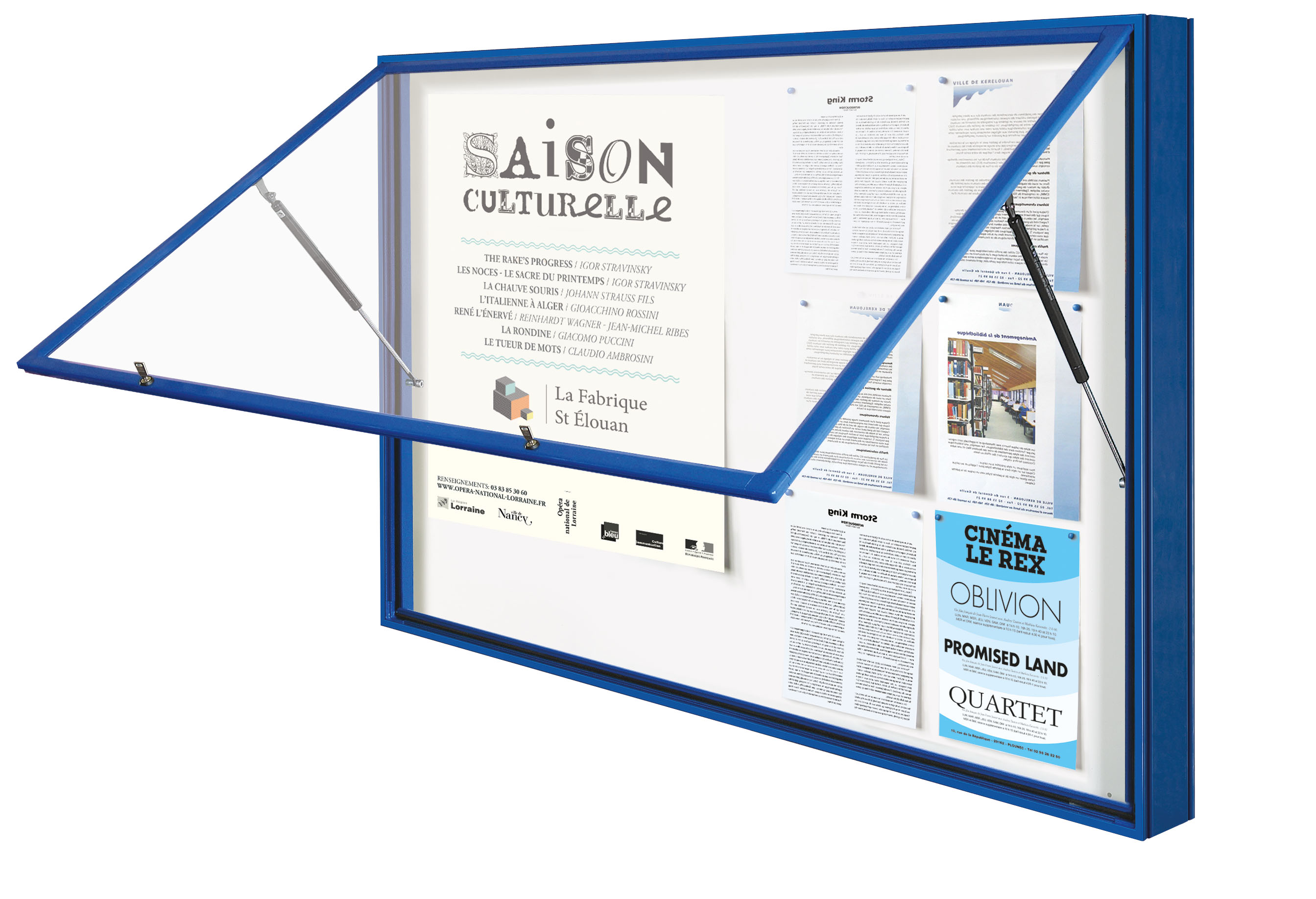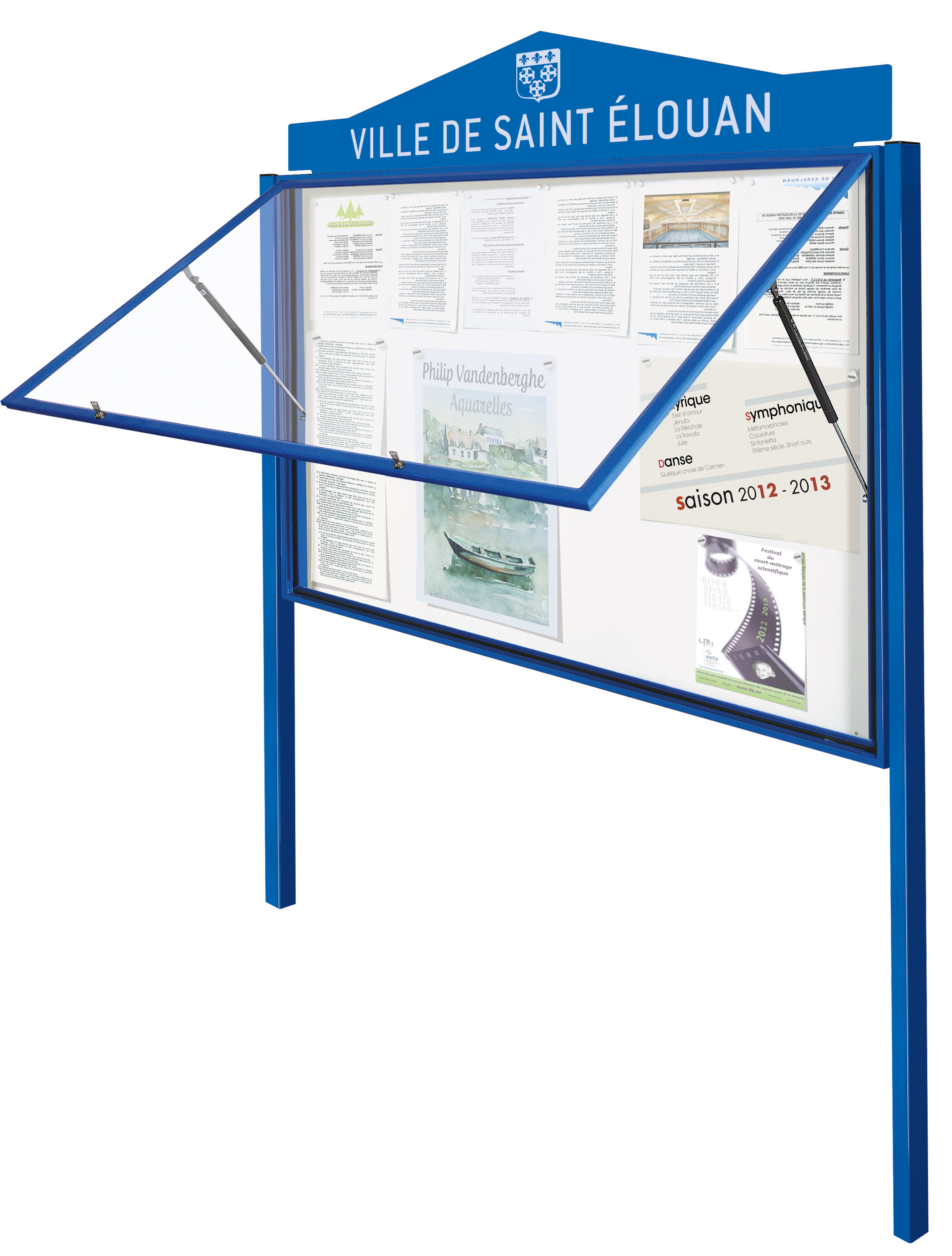 Amplia gama de vitrinas de exterior, con marco de aluminio, junta de estanqueidad y acristalamiento antivandálico. Disponible en distintas medidas y colores.